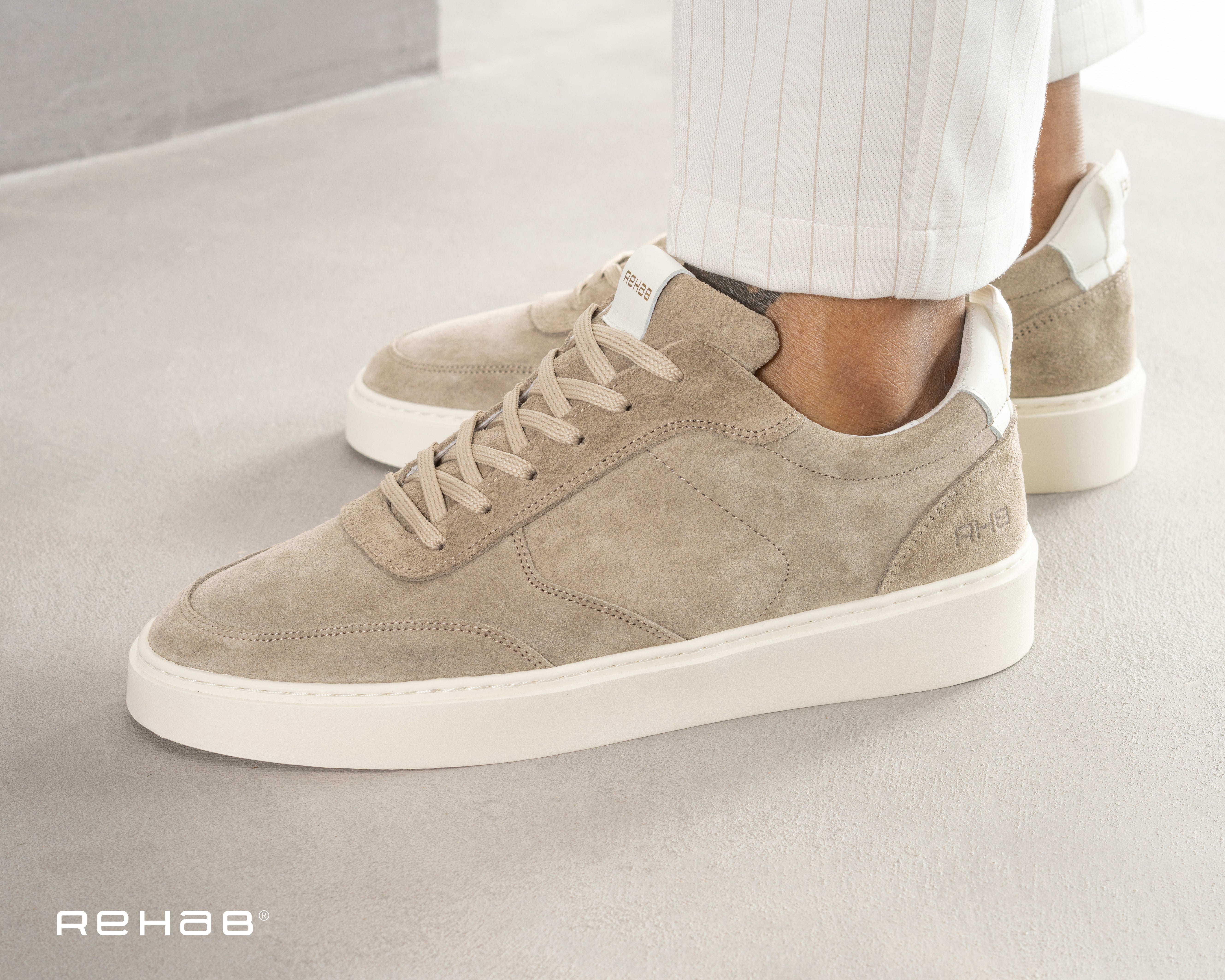 Rehab maakt gebruik van diverse, rijke materialen zoals hoogwaardig suède, luxe nubuck en innovatief knitwear. Dit geeft de nette herensneakers hun verrassende designs en unieke uitstraling. Elk paar wordt met zorg vervaardigd, waarbij aandacht wordt besteed aan fijne details zoals speciale stiksels en eigenzinnige kleuren die de schoenen onderscheiden van anderen.