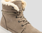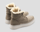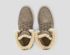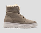High-top taupe nubuck boot with a warm wool lining and laces. The lightweight sole offers comfort. A stylish winter-ready model.