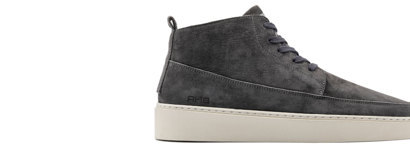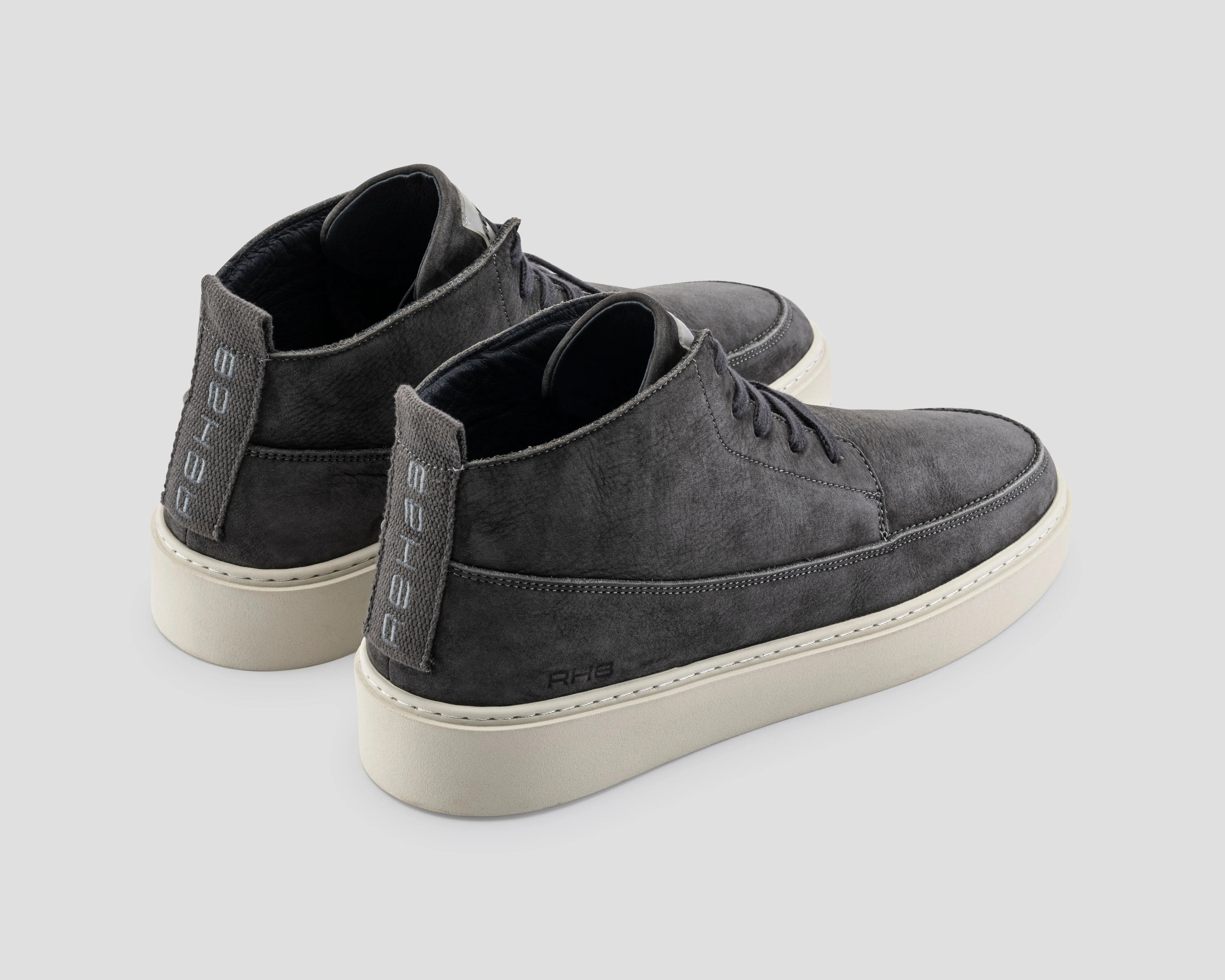 Premium donkergrijze sneakers gemaakt van een mooie kwaliteit nubuck en een minimalistische beige zool voorzien van een comfortable uitneembare binnenzool. De Orion valt tot net iets boven de enkel en kan perfect gecombineerd worden met een mooie jeans.